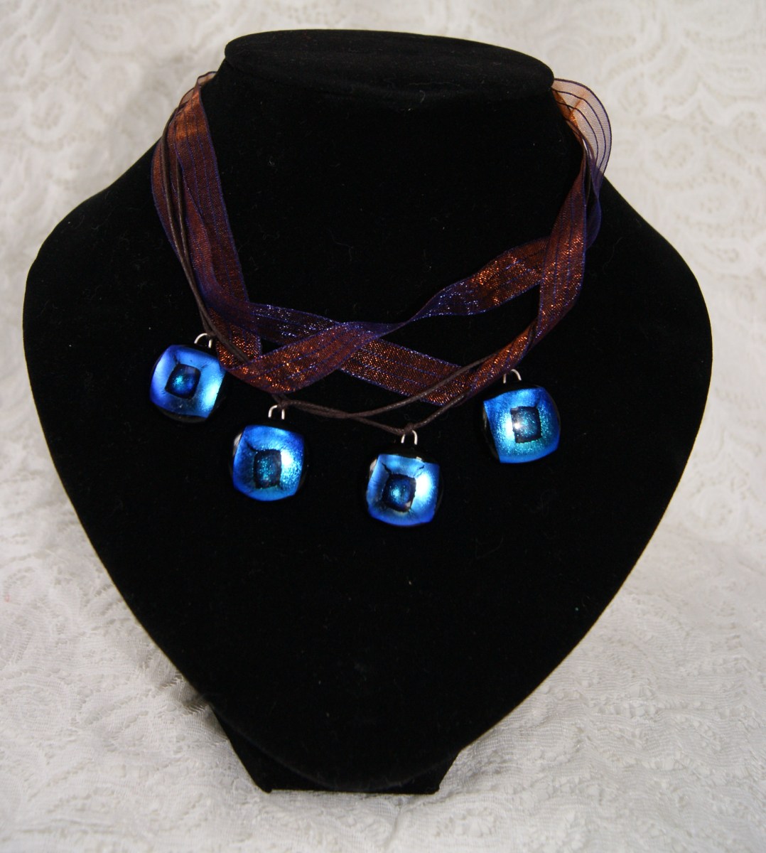 1. Blue Dichroic Beaded Necklace